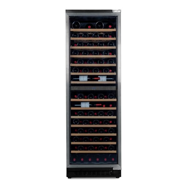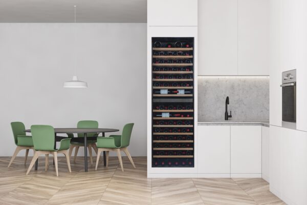 Cave encastrable à température régulée et contrôlée par ordinateur. Adaptée aussi bien aux professionnels, grâce à sa grande capacité de 120 bouteilles et sa polyvalence, qu’aux particuliers amateurs de vin, car son design attrayant la rend idéale pour tout type d’espace.