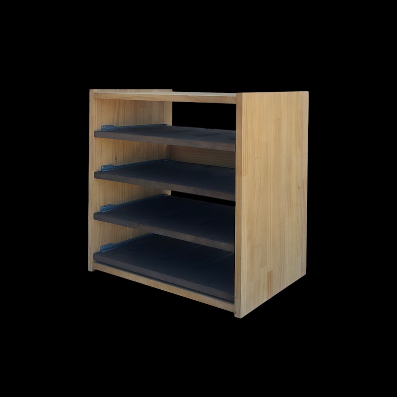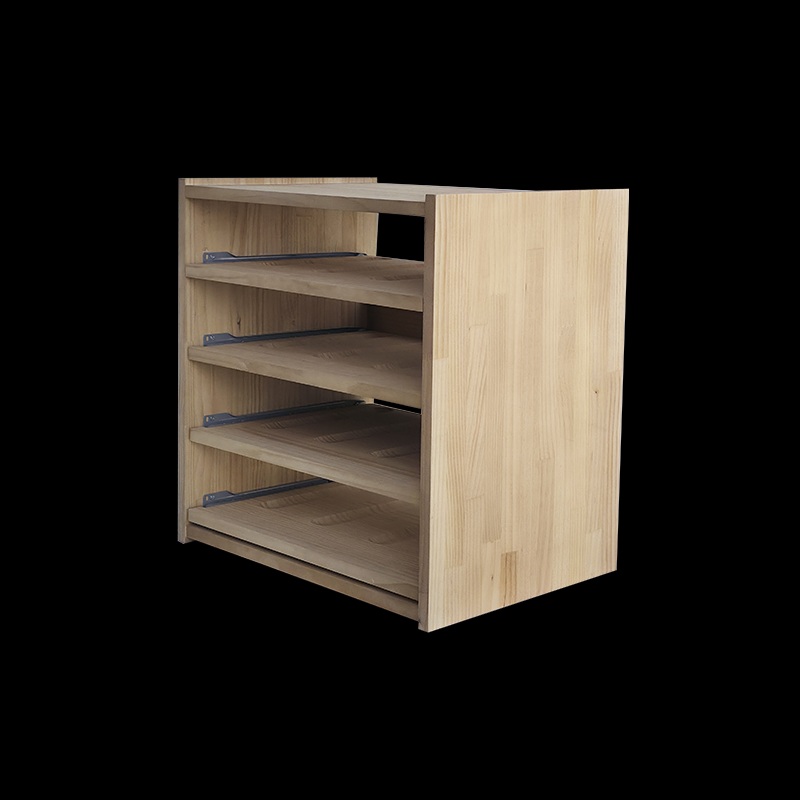 Le Casier à vin avec tablettes coulissantes en bois Monastrell pour 16 bouteilles est une solution de rangement élégante et fonctionnelle, conçue pour offrir un accès facilité à vos bouteilles grâce à ses tablettes coulissantes.