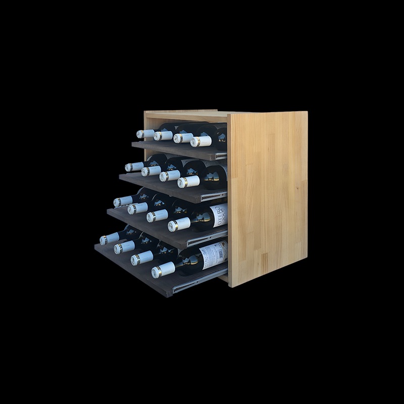 La conception modulaire du Casier à vin avec tablettes coulissantes permet de le combiner facilement avec les autres éléments de la série Monastrell, sans vis, pour créer des configurations sur mesure. Ce module est également disponible en double version pour 28 bouteilles.