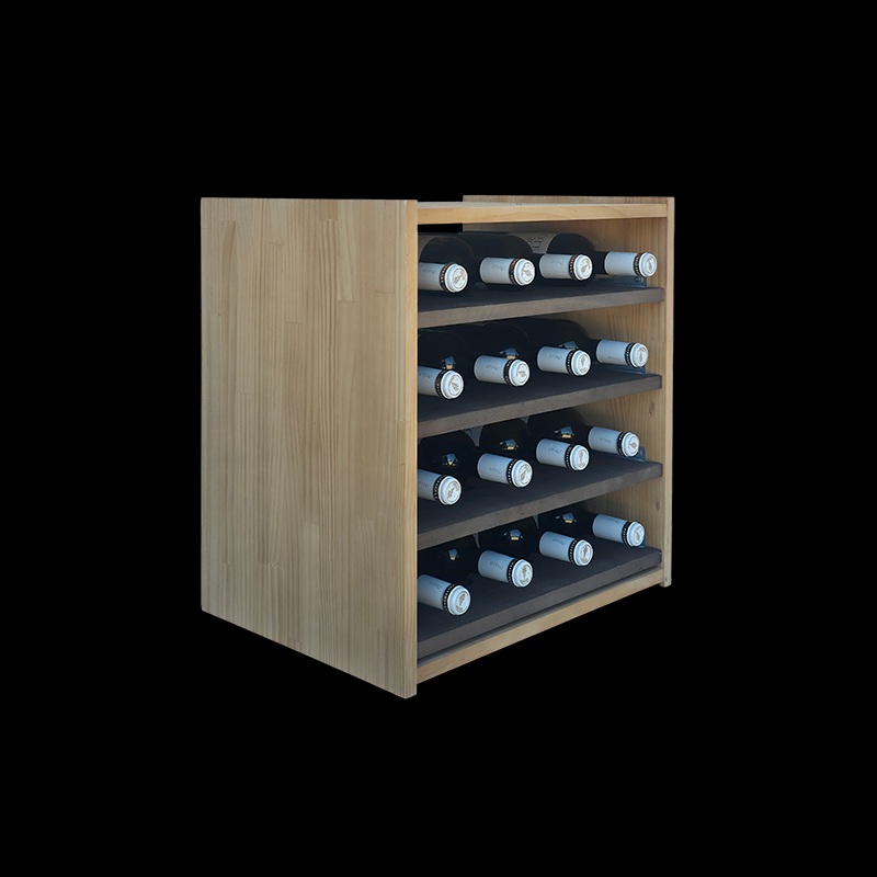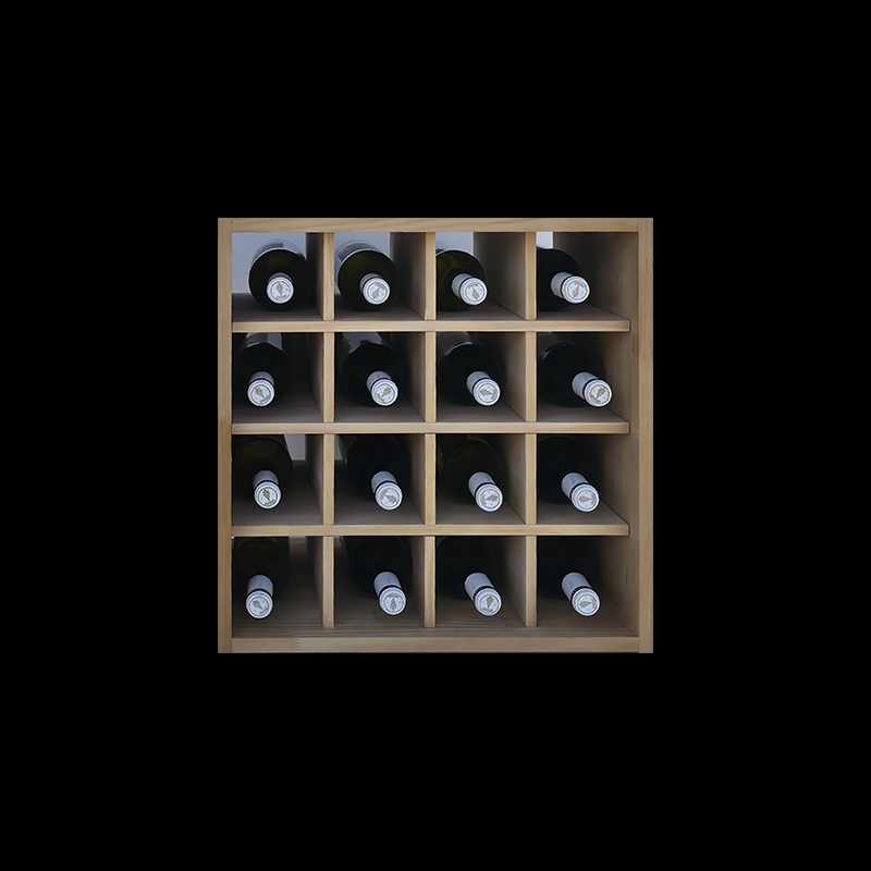 Petit casier vin 16 bouteilles Monastrell en bois. Modulable sans vis, idéal pour optimiser les petits espaces avec élégance.